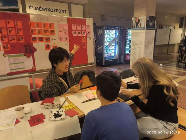 9月26日,为热烈庆祝全球孔子学院成立21周年暨米什科尔茨大学孔子学院(以下简称“米大孔院”)建院12周年,以及中华人民共和国成立76周年和中匈建交76周年,米大孔院以“Researchers' night”为契机,在学校主楼与A1楼隆重举办了系列文化活动。活动由米大孔院外方院长柯丹青博士(Dr. Daniel Kuttor)和中方院长赵静博士主持,米大孔院全体教职员工筹办,吸引了在校师生、学生家长及当地市民等260余人参与其中。庆祝活动从下午6点开始一直持续到晚上9点半结束,现场气氛热烈,一系列精彩的文化体验项目让来宾沉浸于中华文化的独特魅力之中。