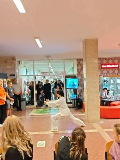 舞台表演环节将活动气氛一次次推向顶峰。首先登场的是孔院志愿者教师带来的陈式太极拳十三式表演,其动作刚柔并济、气势磅礴,赢得了观众的阵阵喝彩。随后,Biohaemonia Assoc奉献了优雅连贯的太极拳与潇洒飘逸的太极剑表演,再一次拉近了观众与中华武术文化的距离。